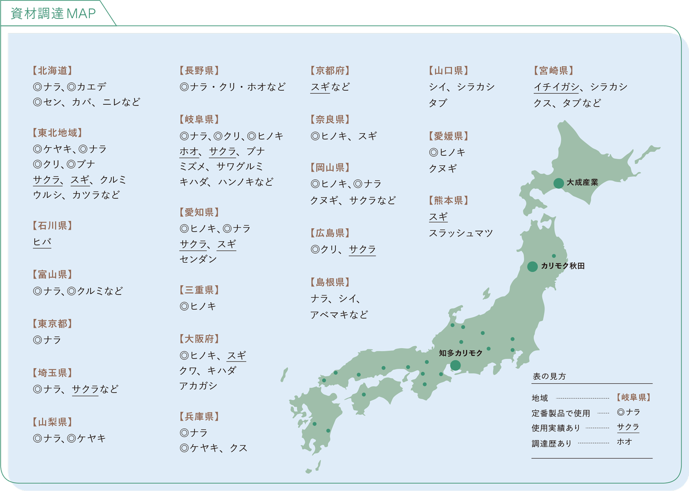 「多様な木材から家具をつくる」ことが、私たち木製家具メーカーであるカリモク家具の考える「森との共存」のかたちです。