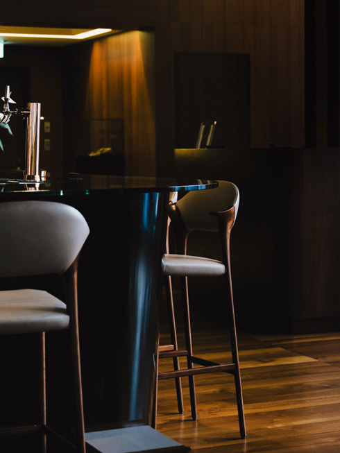 本プロジェクトでは、コレクション製品に加え、INODA+SVEJE(イノダ+スバイエ)監修のもと、 「KUNST」の美学を継承したバースツールを特別に製作しました。流麗なフォルムと、空間に深く馴染む統一感のある佇まいが、訪れる人を洗練されたひとときへと誘います。