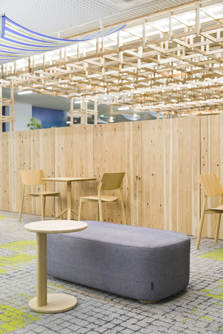 また、国産ナラ材を使用したKNSのパノラマチェアとスカウトビストロテーブルが、地元天竜材を使用した温かい内装と美しく調和し、スズキの原点を肌で感じられる上質な憩いの空間が完成しました。