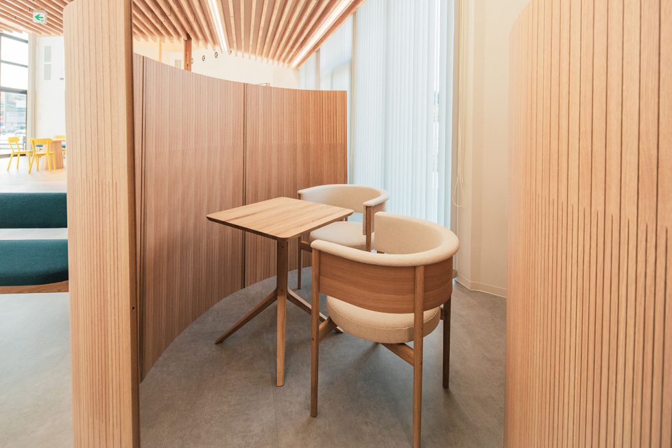 また、機能美を追求したオフィススペースは、働く人々にとっても高効率かつ居心地の良い職場環境を実現しました。家具の提供を通じて、高屋の暮らしにそっと灯りを添える、新しい銀行のあり方に深く共鳴するプロジェクトとなりました。
